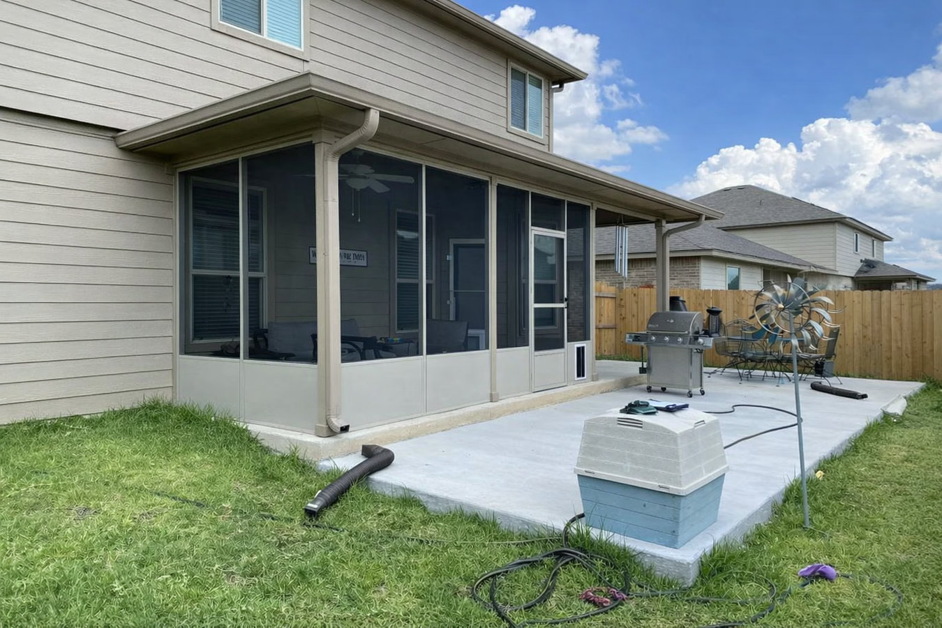 For homes without an existing concrete patio - we pour the pad and build the screen room as a single managed project.